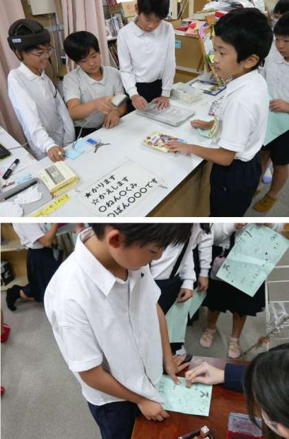 今日から、11月22日まで、図書館の開館時に、読書イベントが実施されます。スタンプラリーのハンコを押してもらうことができます。水色の用紙に、並んでハンコを押してもらっています。
