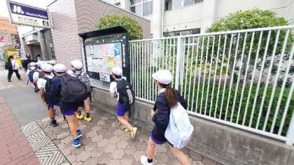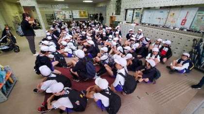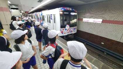 5年生が遠足で服部緑地に出かけます。地下鉄の東梅田で乗り換えます
