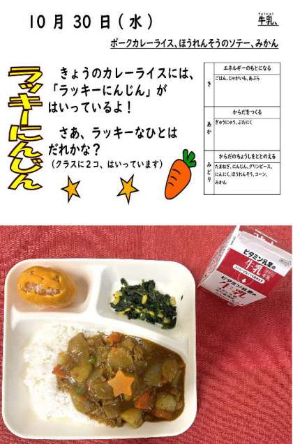 ラッキー人参が各学級に2枚入っています。あたった人はよかったですね。