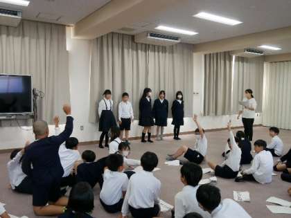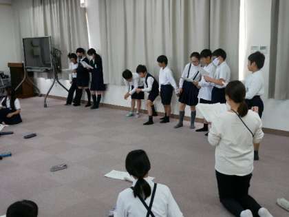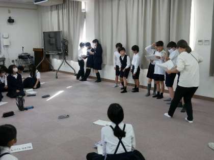5年生が、多目的室で学習発表会のセリフを練習していました。