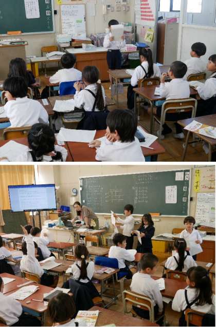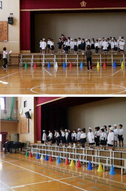 1年生が学習発表会の練習を学級ごとにがんばってセリフなどの練習をしていました。