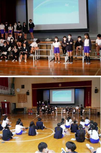 6年生が学習発表会の舞台練習をしています。小学校での最後の発表会です。がんばってほしいです。