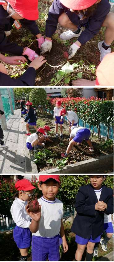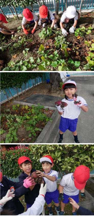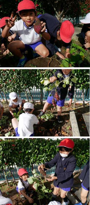 2年生が、運動場の学習園で育ててきたサツマイモの収穫をしました。今年は天候も不順だったため、あまり大きなものはとれませんでしたが、みんなで少しずつ掘って収穫できました。