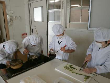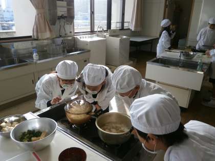 5年生が、調理実習でごはんとみそ汁を作りました。