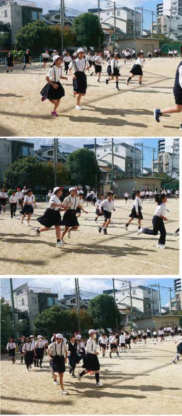 今日から、20分休み時間に業間かけあし運動が始まりました。今日は3年生と6年生が、放送にあわせてかけあし運動を皆で行います。