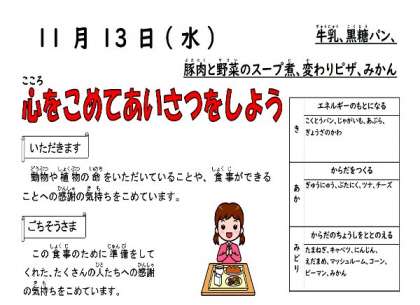 11月13日 今日の給食は!