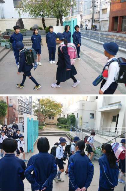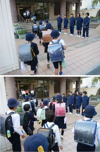 今日から2日間、桜宮中学校2年生が職場体験学習で5人が来てくれました。さっそく、朝の玄関での挨拶をしてくれました。