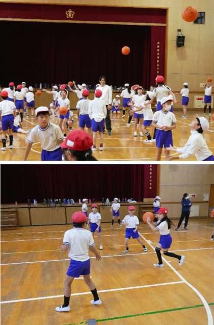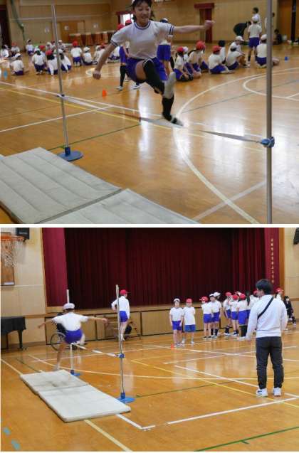 都島区の運動能力向上事業に講師先生にきていただき、各学年ごとに運動種目の練習をしていただきました。3年は50メートル走、5年は走高跳び、4ねんはバスケットボールを練習しました。