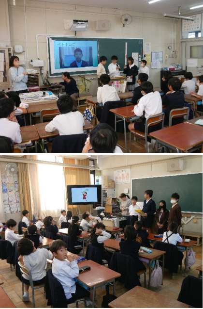 本校の日本語センター校に通っている、他校の来日児童たちとの交流をしています。2年生と5年生で、いろいろな国の言葉クイズなどを楽しんでいました。