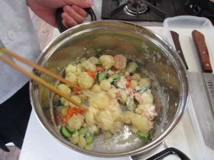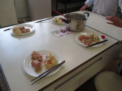 作っていたのは、ポテトサラダとエノキのベーコン巻でした。