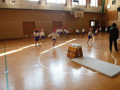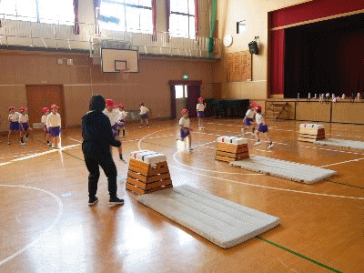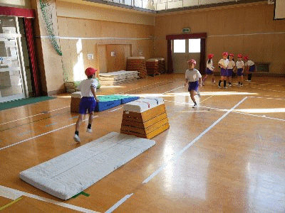 1年生がとび箱の練習をしています。上手になりましたね。