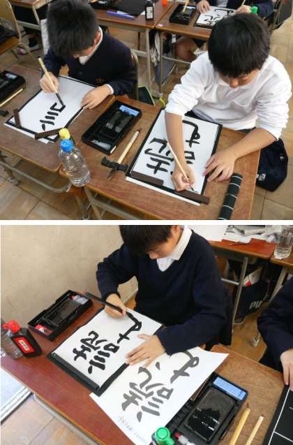 5年生が書写で、「読む」と書いています。バランスがむずかしいですね。