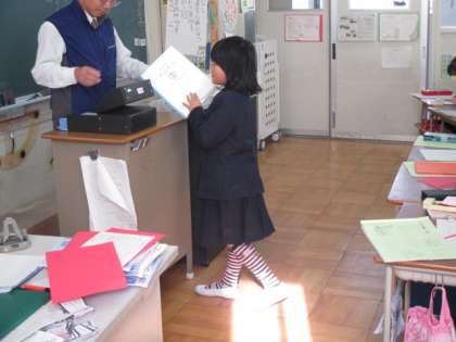 担任の先生が、1人ずつ名前を呼んで渡します。