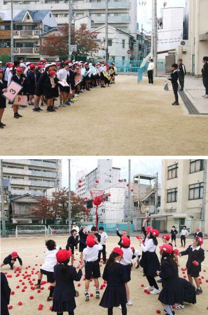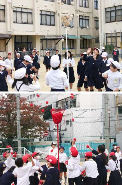 今日の児童集会は、3年生と5年生の運動集会で、玉入れを行いました。例年より、少し暖かいので、気持ちよい活動ができました。