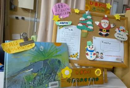 今月のひまわりボード 公開日 2024/12/05 更新日 2024/12/05 図書ボランティア「ひまわり」 あっという間に師走ですね。 読書イベントが終わったので、図書館開放がゆったりしています。 のんびり読書をしに図書室に来てくださいね! ひまわりさん、今月も温かいメッセージとおすすめの本の紹介ををありがとうございます。 いいね(0)