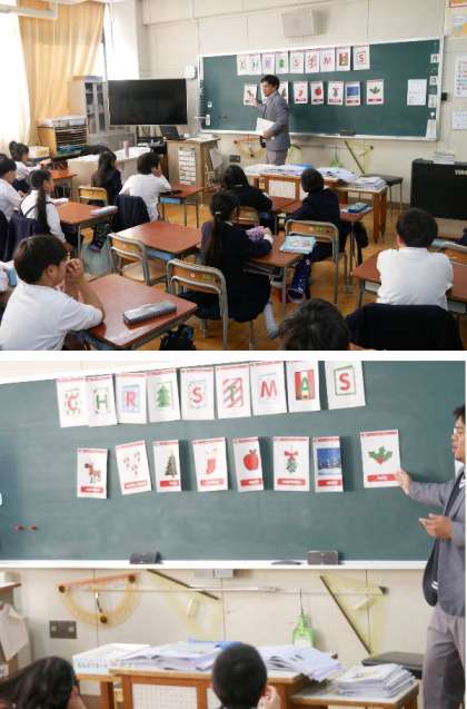 2年生の英語に、ネイティブのトゥリアオ先生がきてくれています。今日はクリスマスにちなんだゲームで学習です。