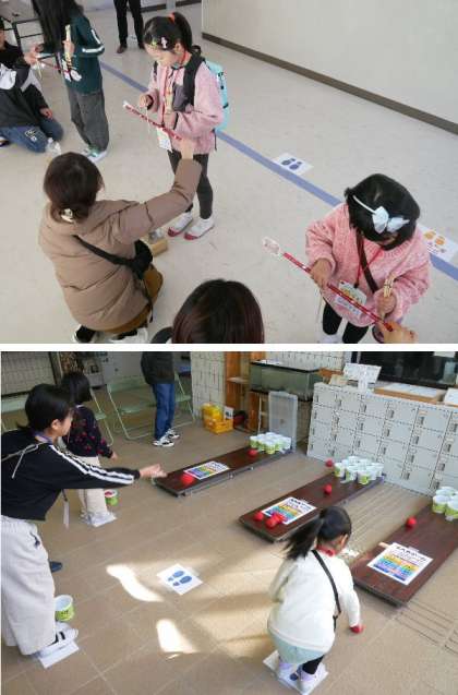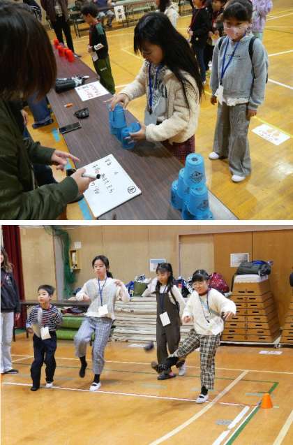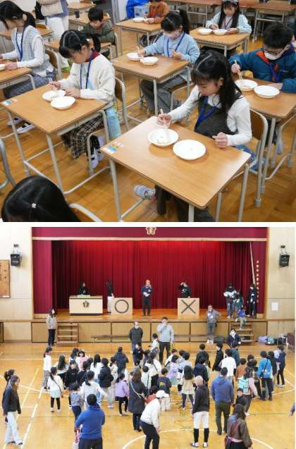東都島小の講堂で、東都島連合子ども会のお楽しみ会がひらかれ、子ども達はゲームやクイズ大会、ビンゴ大会でたのしんでいました。