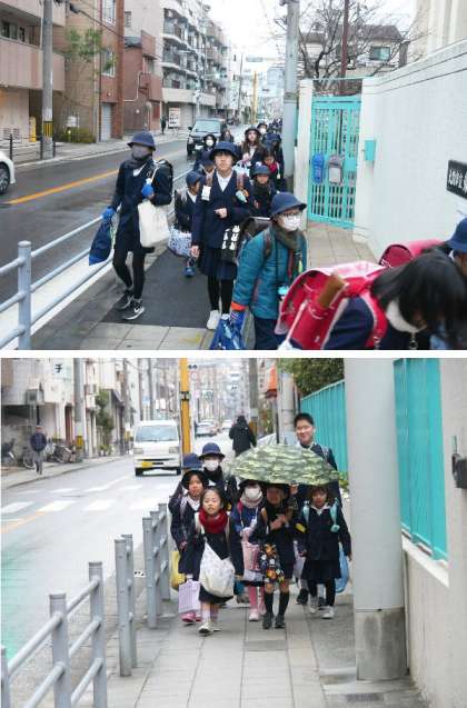 今日から3学期が始まります。児童たちが元気よく登校してきました。