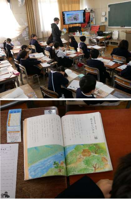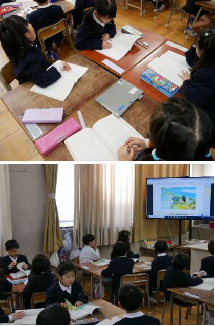 1年生の国語では、「花さかじいさん」を学習しています。昔ばなしを聞いて、おもしろいかったところなどを読み取っていきます。