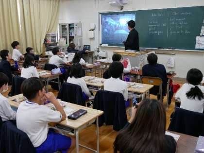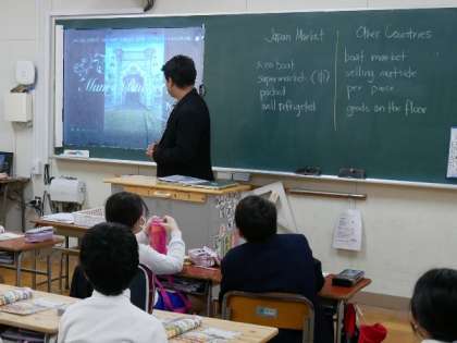 4年生の英語に、ネイティブのトゥリアオ先生が来てくれています。日本の市場と違う、外国のボートマーケットについて紹介していただきました。