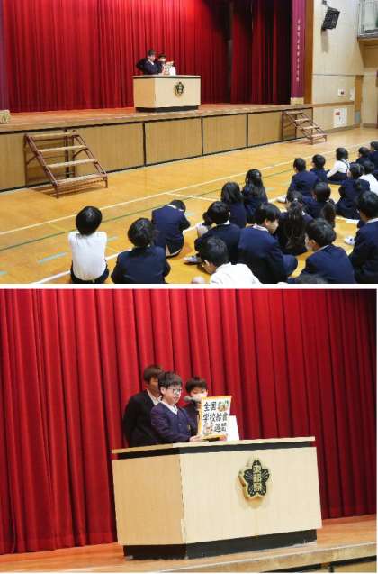 月曜日は全校朝会です。校長先生から、歴史作家の司馬遼太郎氏についてお話しました。