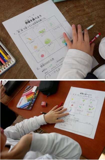 5年生では、本校の栄養教諭の先生が、野菜のはたらきについて授業をしていました。