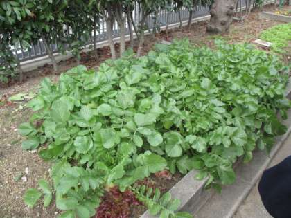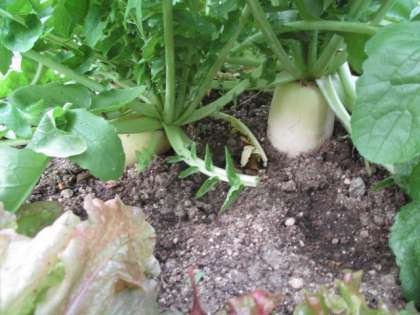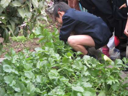 校長先生が育てた大根を、子どもたちが収穫しようとしています。