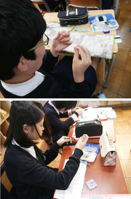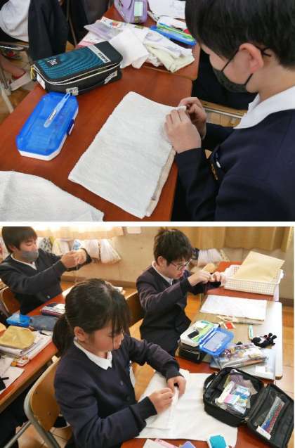 6年生のぞうきんづくりが始まりました。卒業をお祝いする会で、学校にプレゼントする雑巾です。感謝の気持ちをこめて作ります。