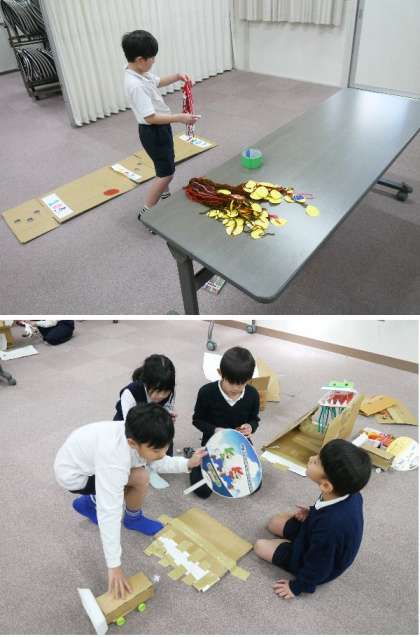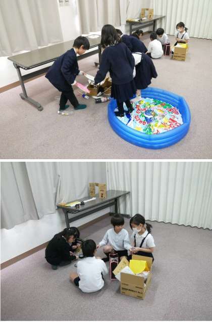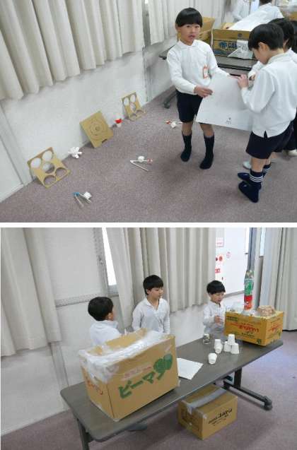 2年生が、1年生を招待しておもちゃ広場を開催しています。今日で最後です。2年生が、一生懸命に準備をしていました。
