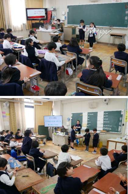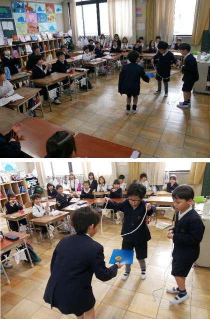 1年生では、できるようになったことを発表します。リハーサル練習をしていました。