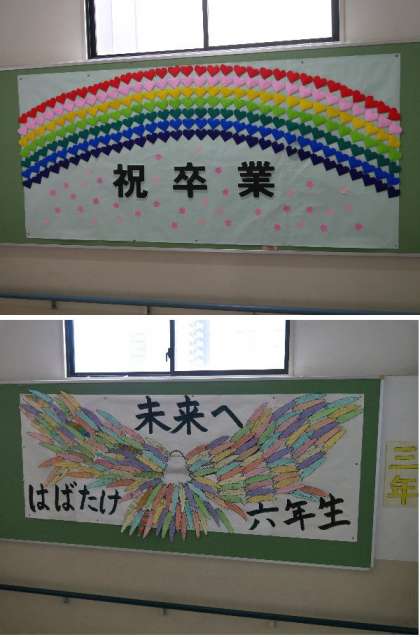 1年から5年の掲示板に卒業お祝いの掲示が掲示されました。