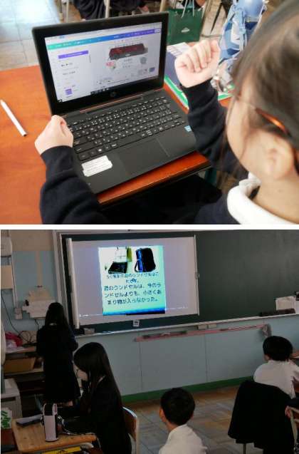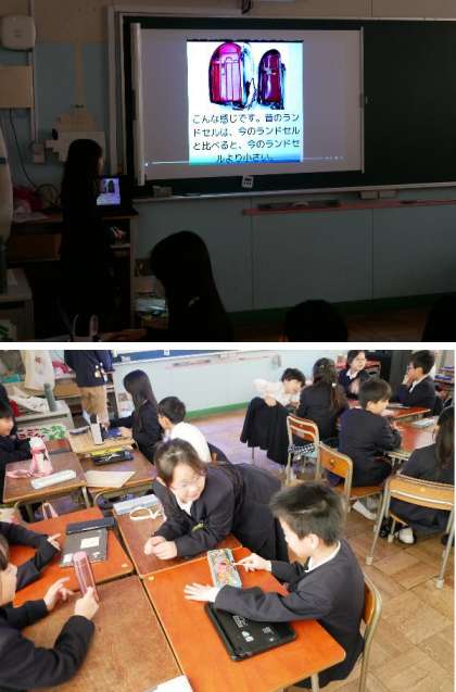 3年生の国語では、「道具のうつりかわりを説明しよう」について学習しています。説明する道具を調べて整理して、話の組み立てや話し方を工夫して発表していました。