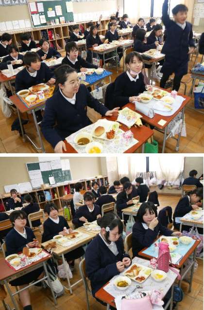 6年生も卒業まであとわずかですね。みんなと給食を楽しんでいます。