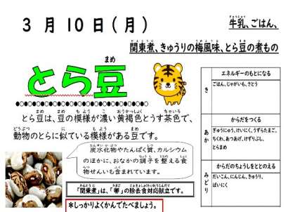 今日の献立は、関東煮、きゅうりの梅風味、とら豆の煮もの、牛乳、ごはんでした。