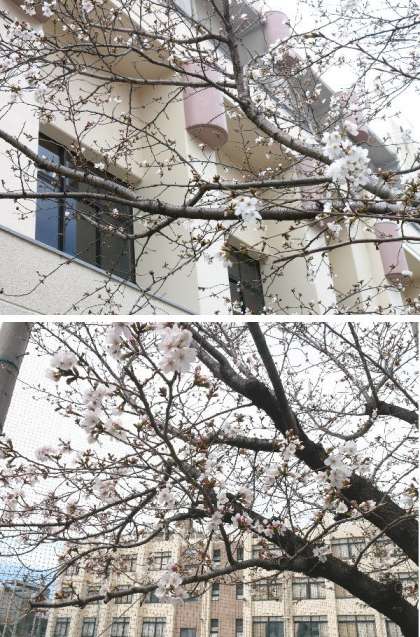 校庭の桜の花が咲き始めました。明日から4月になります。