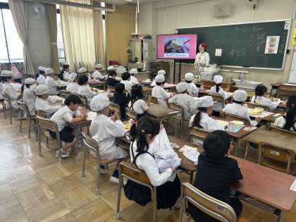 子どもたちは、担任の先生からあまなつかんの食べ方を指導してもらい、時間がかかりながらも上手に食べることができました。
