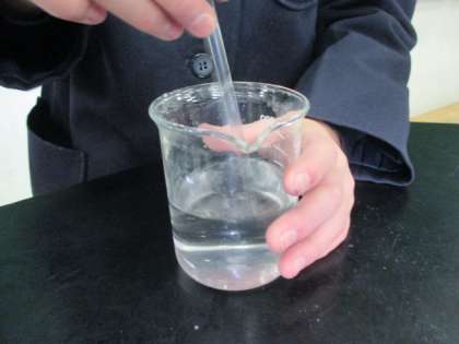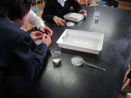 食塩を水に溶かすという、簡単ですが大切な実験です。