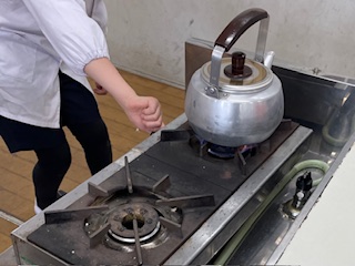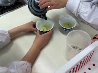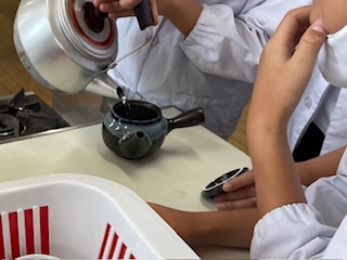 家庭科「クッキング・はじめの一歩」『お茶を淹れよう』の学習で調理実習をしました。ガスコンロの扱いに少し戸惑う場面もありましたが、協力して楽しく実習し、美味しくお茶をいただきました。