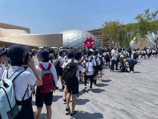 5月13日(火)に6年生が大阪・関西万博での活動を実施しました。大阪ヘルスケアパビリオンを見学し、昼食後にガンダム展示・大屋根リングを移動し、コモンズA館を見学しました。