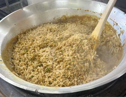 カレーマカロニグラタンは、乳・小麦を使用していません。米粉のマカロニ・カレールウの素・パン粉や上新粉を使用し、工夫をして仕上げています。