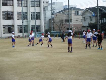 まだまだ寒風が吹く寒い運動場ですが、日差しはやさしい春のようでした。