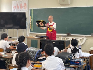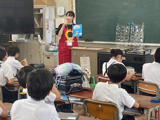 今日は、『ひまわり』のみなさん が5・6年生に朝の読み聞かせをしてくださいました。茹るような暑さの中、子どもたちがリラックスできるようにやさしく絵本を読んでくださいました。