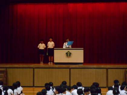 そして、校長先生、生活指導の先生から、この1学期のみんなのがんばりや夏休みに気をつけてほしいことのお話がありました。