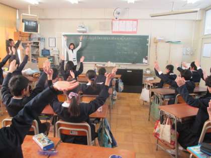 今日の6年生の外国語の授業は、桜宮中学の英語の先生に授業をしていただきました。