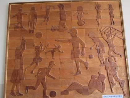 上の写真は、昭和62年度の卒業制作です。楽しそうに遊ぶ子どもたちの姿が描かれています。4階エレベーターホールに飾ってあります。