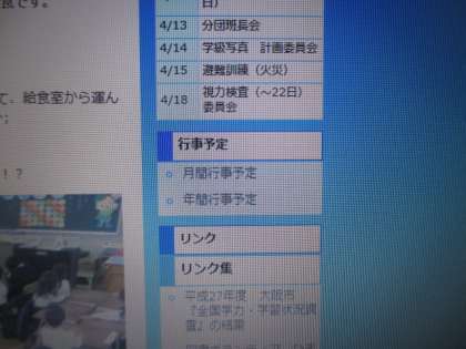 HPの画面右側にある「行事予定(写真)」にある、5月の行事予定で、3・4年生の遠足予備日と5年生の遠足予備日が変わりました。