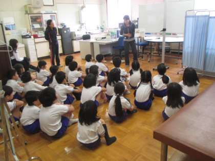 発育測定では、身長と体重をはかるだけではなく、保健室の先生が健康にかかわることについてお話をしています。