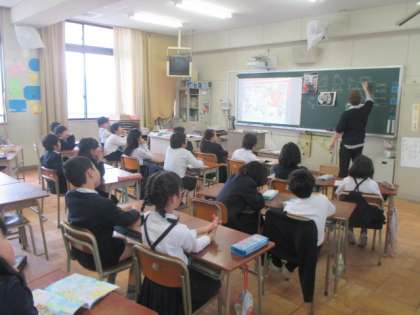 4年生の授業では、アイルランド人のティーチャーは、いろいろアイルランドのことを紹介してくれました。子どもたちも、