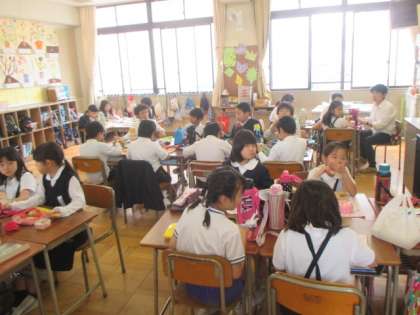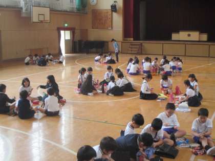 4年生は教室で仲のいい友だちと、3年生は講堂で広々と、遠足気分を楽しみました♪