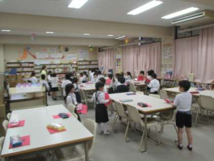 図書室の使い方を教えてもらって、自分で本を探しました。
